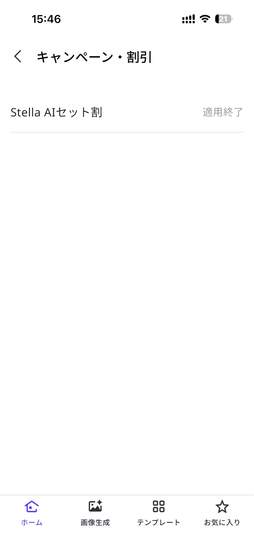 キャンペーン・割引の確認画面があるので、確認すると「Stella AIセット割」は適用終了になっていました。