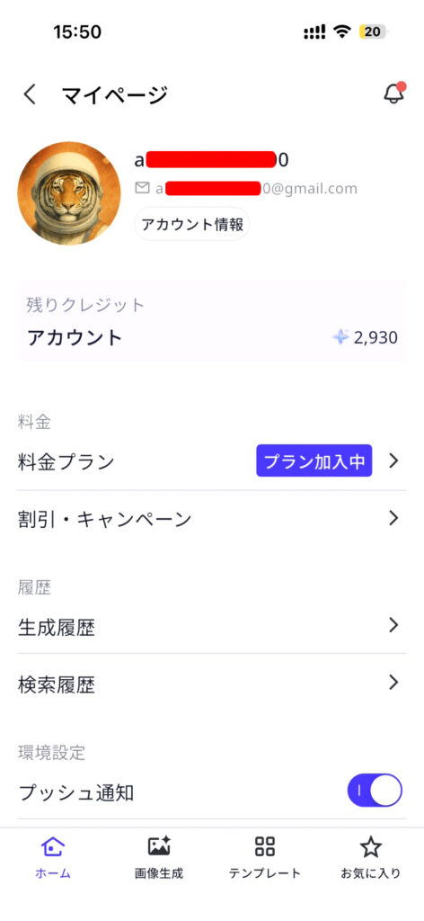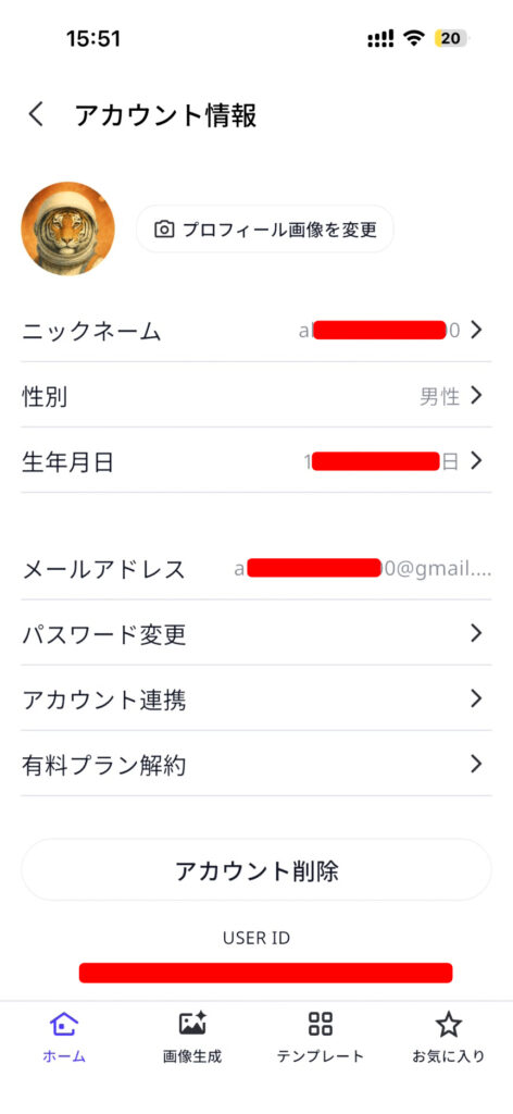 まず、Stella AIのアプリまたはサービス画面から アカウント情報 を開きます。